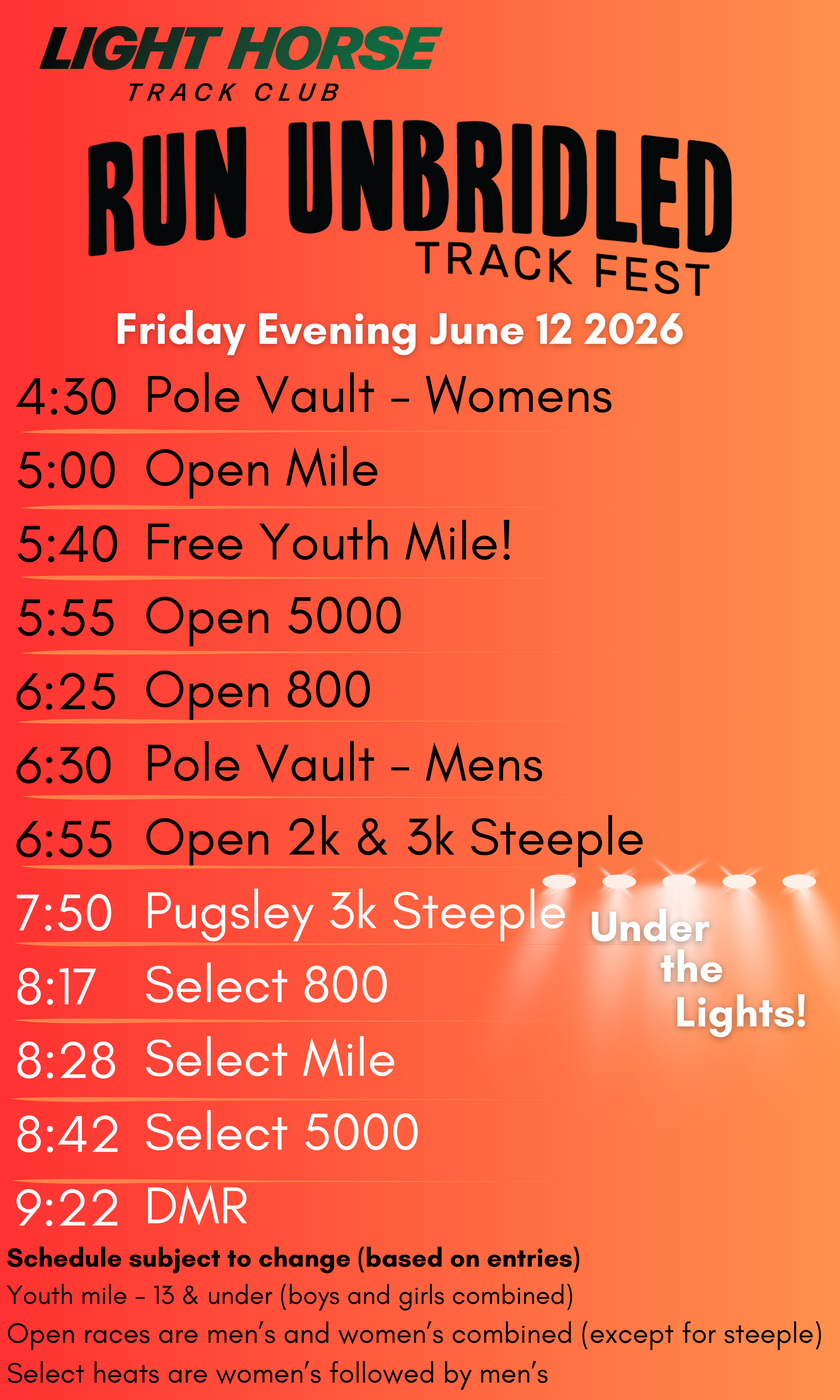 The Run Unbridled Track Fest is another signature track event brought to you by Light Horse Track Club—bringing community, competition, and fun together in a high-energy atmosphere.